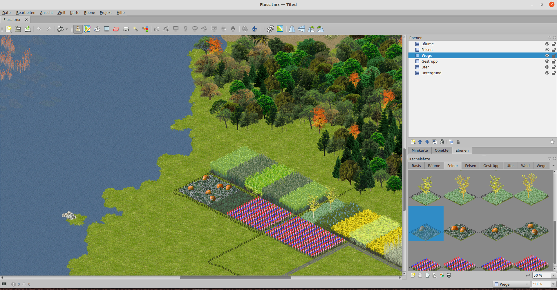 Die Tiles sind wieder doppelt hoch (240 x 240 Pixel) und können auf der Ebene Wege genutzt werden. Einige haben ja schon einen Weg. Mit etwas probieren sollte man problemlos damit zurecht kommen.